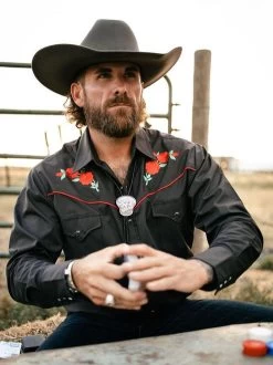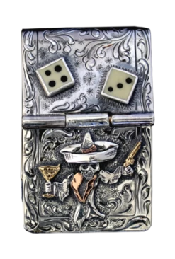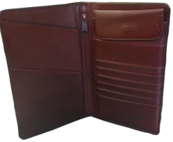 Vogt Mens Accessories – Wallets – Chocolate Brown Leather Wallet With Hand Tooled Floral Corners