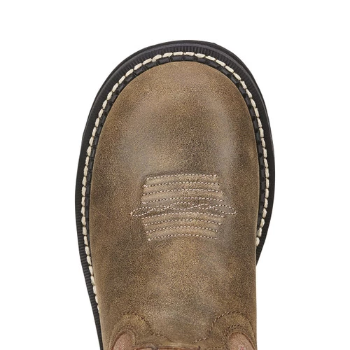 Rides great, works hard, and has distinctive Fatbaby style. The stitch pattern has swervy fun and a dash of elegance. Secure, supported feet come from Ariat’s ATS technology, and comfortable, durable, streamlined Pro Crepe® Light outsoles.