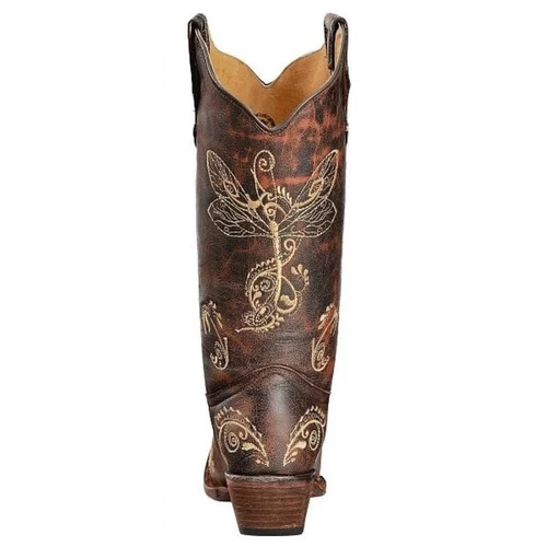 Circle G By Corral Women’s Boots – Distressed Brown-Bone Dragonfly Embroidery – Snip Toe