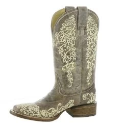 Corral Women’s – Brown Crater Bone Embroidery Square Toe