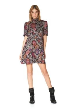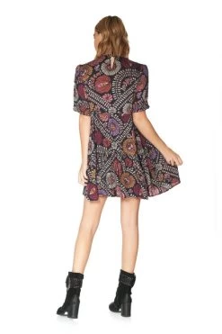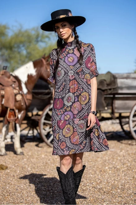 The aesthetic of Chiapas embroidery is significant and pervasive throughout the Maria collection. You’ll see it in the form of actual embroidery in several pieces, and we also translated it into a custom lightweight print that we designed into a variety of silhouettes. This flirty, feminine sundress is a pretty mix of darling and demure. The sleeves hit near the elbow and the mock neck gives it a modest vibe, but the babydoll-esque silhouette with slightly gathered tiers gives it a flattering, flowy fit. Perfect for pairing with your black Almost Famous Boot or a fun shortie boot.