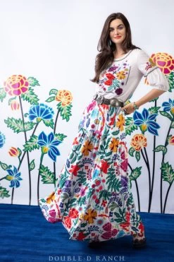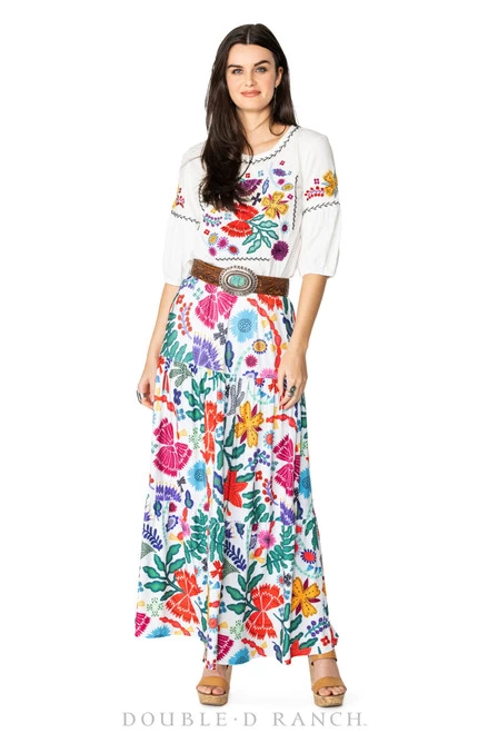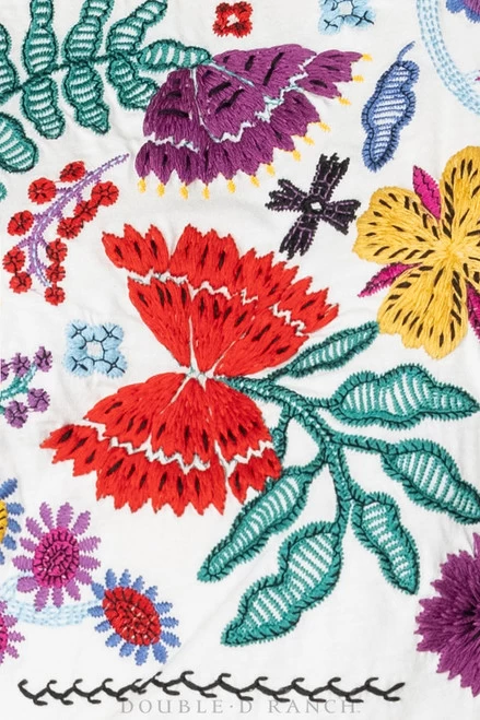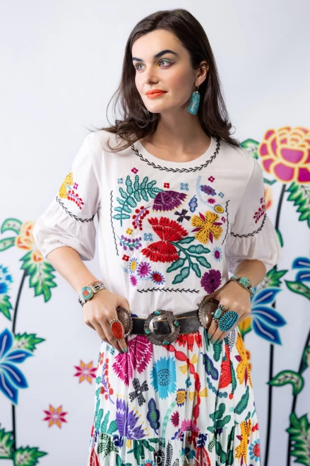 Is there anything better than a top that feels like a tee, but definitely doesn’t look like “just a tee”? This colorful cotton top is a comfy relaxed fit but embellished with vibrant folk art floral embroidery polished with geometric details and a unique pop of volume to the mid-length sleeve. It may feel as good as a grab-and-go tee, but it has the appearance of getting dressed with intention.