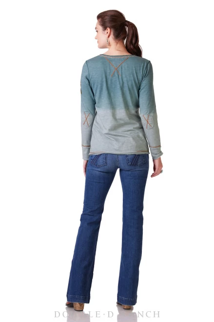 In the letters we found of Little Mary’s, she told tales of her horse, Old Billy, so we knew we had to pay homage to him in this collection dedicated to her. This darling tee features a pretty portrait of Old Billy adorned with flowers (and a sneaky lucky horseshoe!) against a two-toned dip dye long-sleeved tee.
