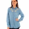 - embellishments: pearl snaps, applique patches, screenprint, hand embroidery