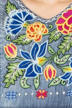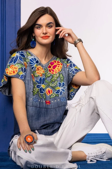 Y’all know we live for – and live IN – our DDR ponchos. Well, we went a little outside the box with this one, and it is… *chef’s kiss*! We created the Ynez Poncho in a lightweight denim tencel and reined it into a more structured silhouette and brought it to life with scaled-up vibrant Olinala-inspired folk art floral embroidery. Tell me you’re not just dying to get this on with your favorite white jeans or skinnies!