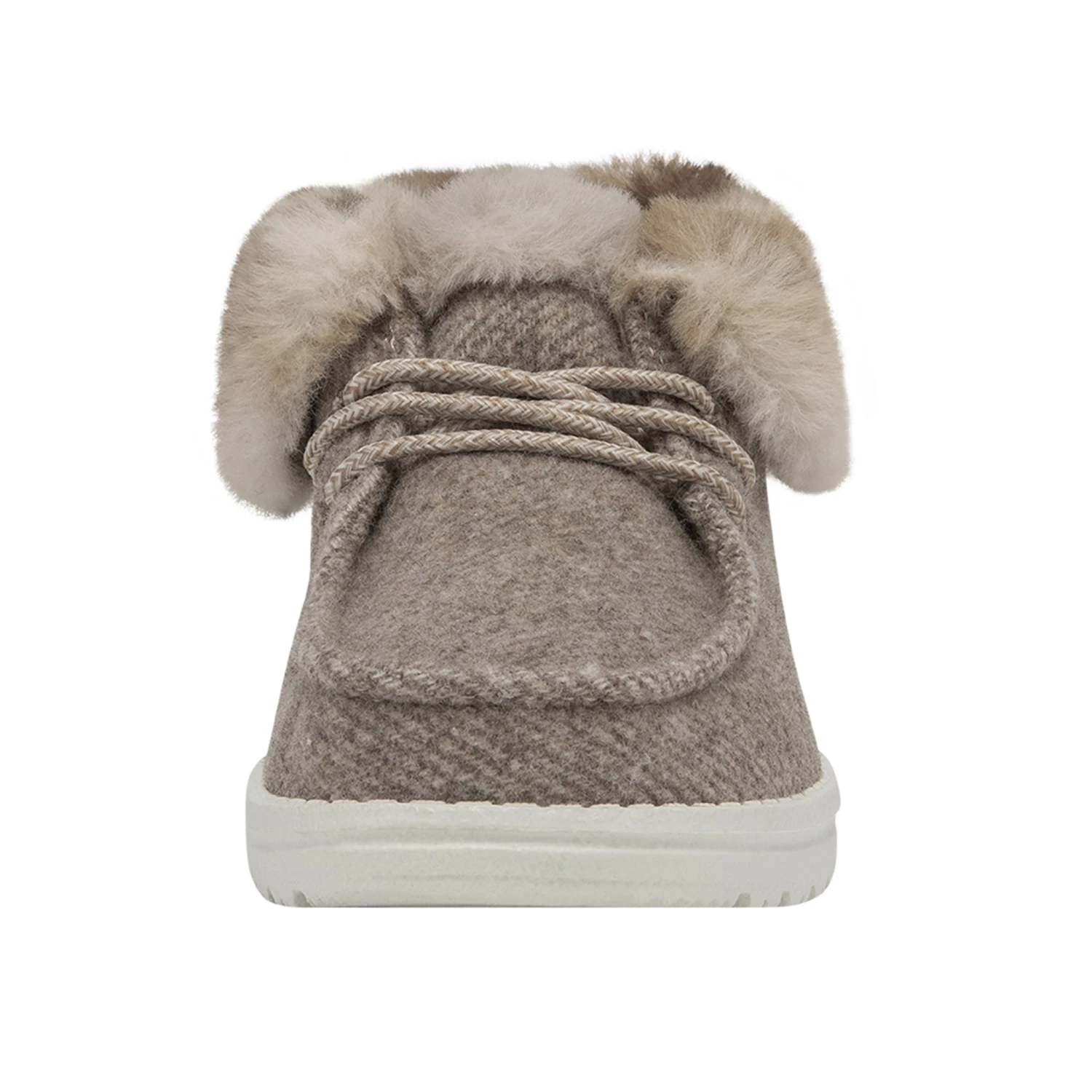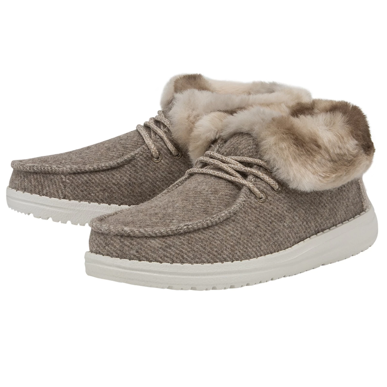 This coffee dye style Britt from Hey Dude is a fan favorite for good reason, with its cozy feel and cute looks! This style features the popular elastic laces that are so convenient and fast. You will stay warm and comfortable with the faux fur collar on the ankle and the cushioned insole.