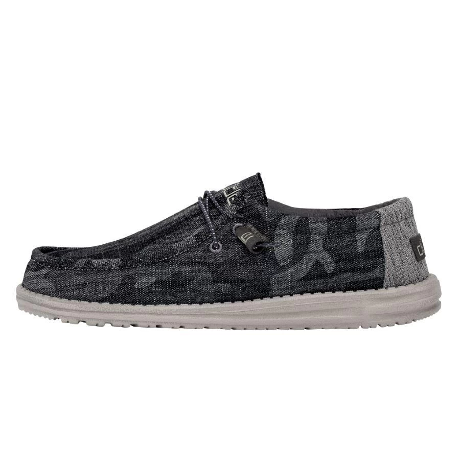 This Hey Dude Wally Camo Tweed is such a fun yet simple and neutral shoe that can complete any outfit. Dress it up or dress it down, the cool black and grey camo print brings such a fun and unique vibe. The unique print is constructed with quality materials like organic cotton and Flex & Fold technology, which is easily the most versatile shoe.