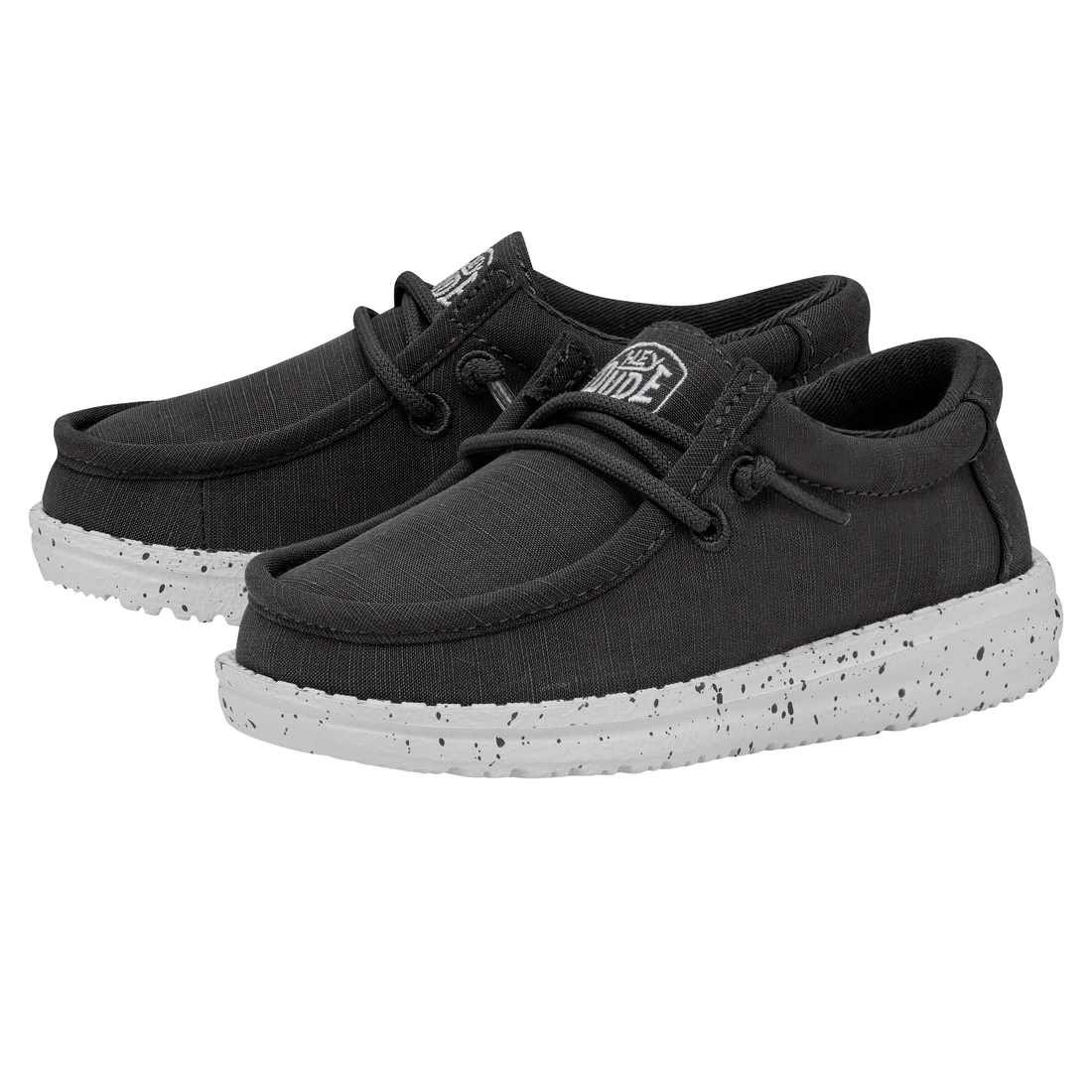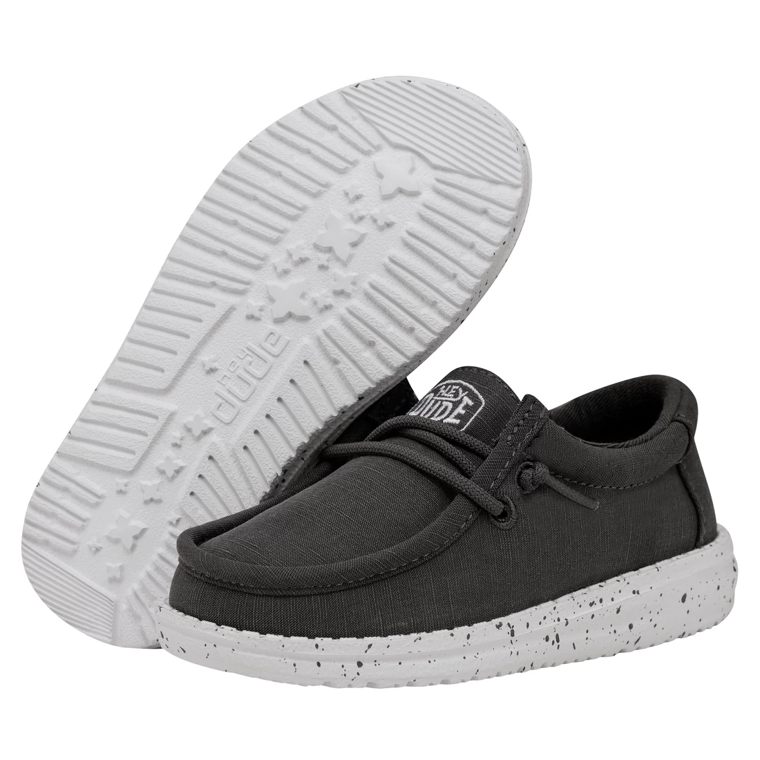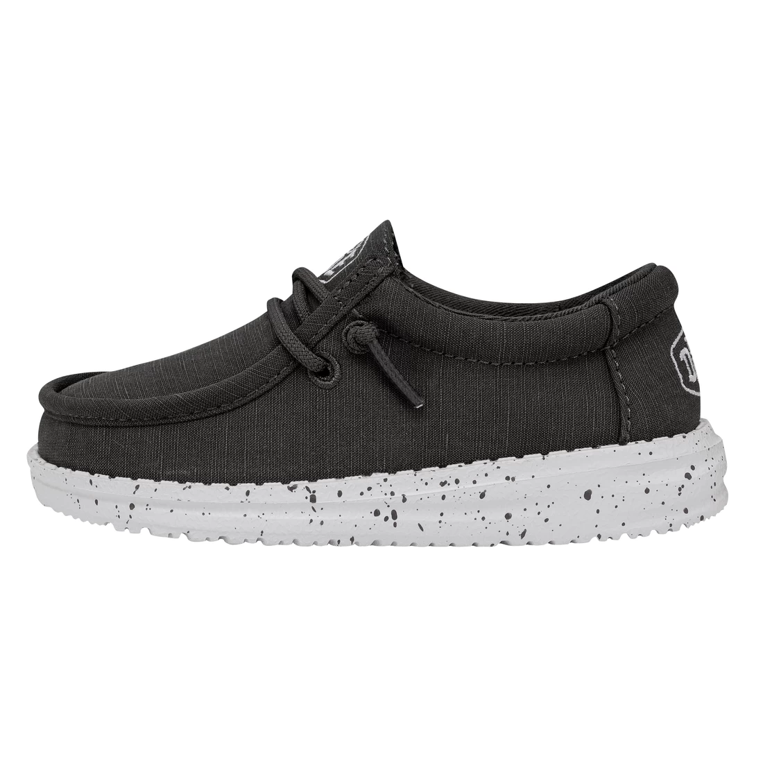 The Wally Toddler Slub Canvas, Dark Grey, is the perfect summer shoe for your little one. A great color for any little one and perfect to wear as a team color to support big bro or big sis’s team! The Wally Toddler Slub Canvas collection has all the tried-and-true construction you know and love, but is is extra lightweight for those little ones. It features a durable slub-woven upper and lined with soft cotton for durability and comfort. This shoe features an ultralight outsole with no-tie, elastic laces and a cushioned ankle collar for extra support. Made just right for spirited little feet.