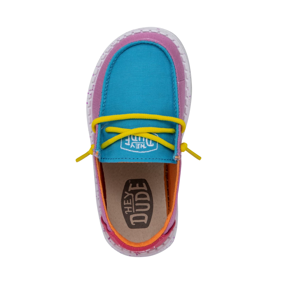 The Hey Dude Wendy Toddler Slub Canvas, Color Block, is the perfect shoe this summer for your little one. A fun bright color block design, brings fun and adventure no matter where the road takes them. Your little one will love all the colors and you will love the all day comfort and lightweight design.