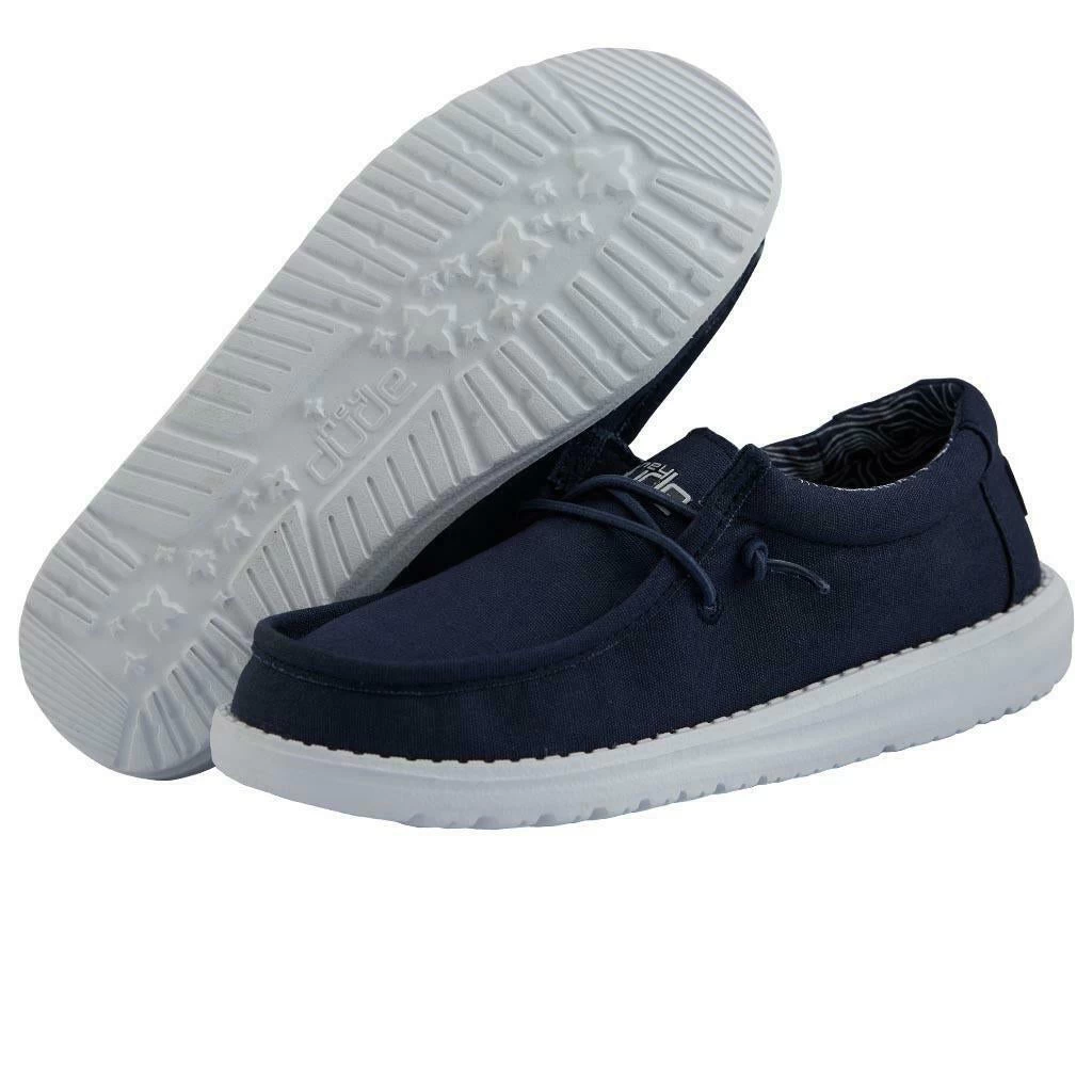 These youth Hey Dude shoes are a fun navy! The color is perfect to match with any outfit and you’ll love the comfort even more! The shoes have a soft cork insole and a rubber outsole!