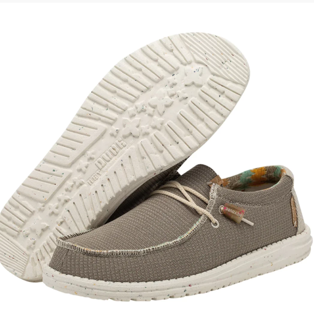 Hey Dude’s iconic design in the best earth-friendly materials we could find. Classic moccasin construction in a stretch knit woven from 100% recycled plastic bottles, with hemp reinforcement at the heel. Soft, organic cotton lining.