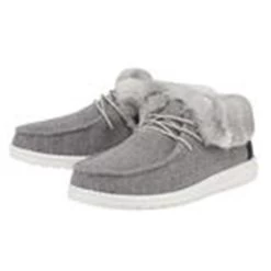 The Britt is a cozy casual ankle bootie. It comes with soft wool uppers, animal-free fur lining that extends over the foldable cuff to provide ideal warmth, without losing the classic Hey Dude relaxed feel and lightness. The classic tie-up lace closure offers a secure fit.