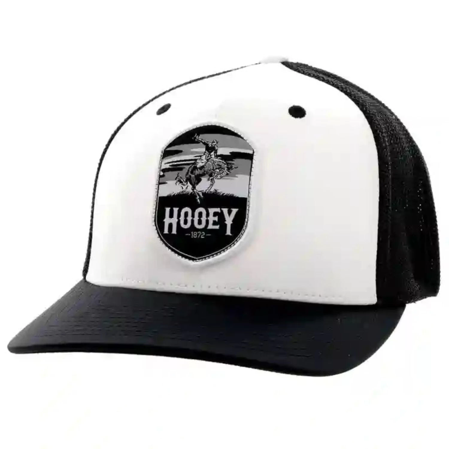 This Hooey cap is made with Odessa Fabric that resists sweat stains and water. FlexFit back available in two sizes for the perfect fit. Offered in a mid-profile 5-panel curved bill with a black and white Hooey Cheyenne Logo!