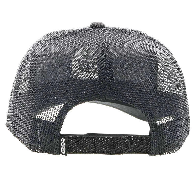 For those who like it more on the quiet side, this cap is for you. It is an all over black with a black YOUTH adjustable backstrap. The front is made of solid material and the back out of black mesh for ventilation. The patch is a black strap Roughy O on black front.