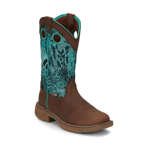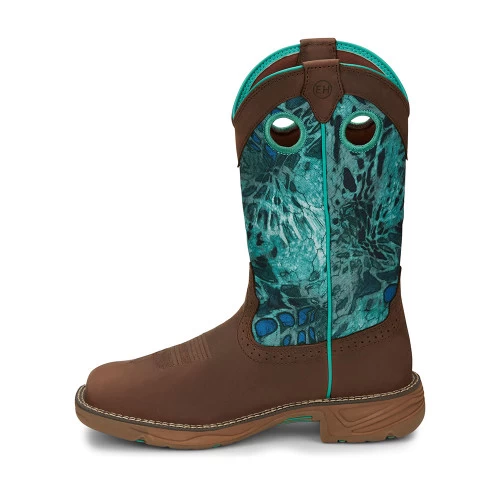Justin Women’s Work Boot – Rush Brunette Typhoon Camo Waterproof Square Toe