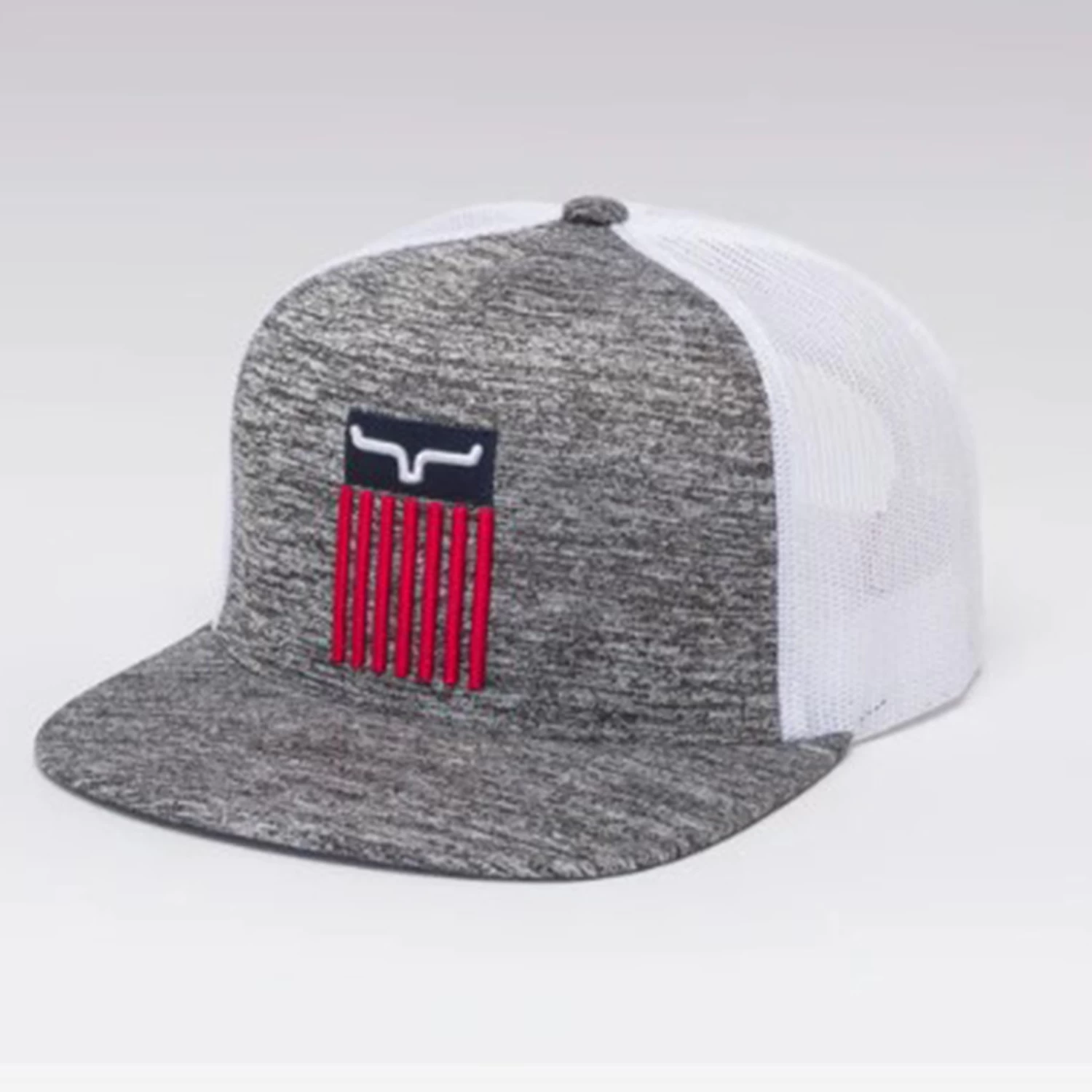 Look your best in this Kimes Ranch Cody Trucker Cap. Multiple colors to choose from. Available in a high-profile with a cotton twill front and mesh back. The unique Kimes Ranch US Flag which include the Kimes Ranch logo!