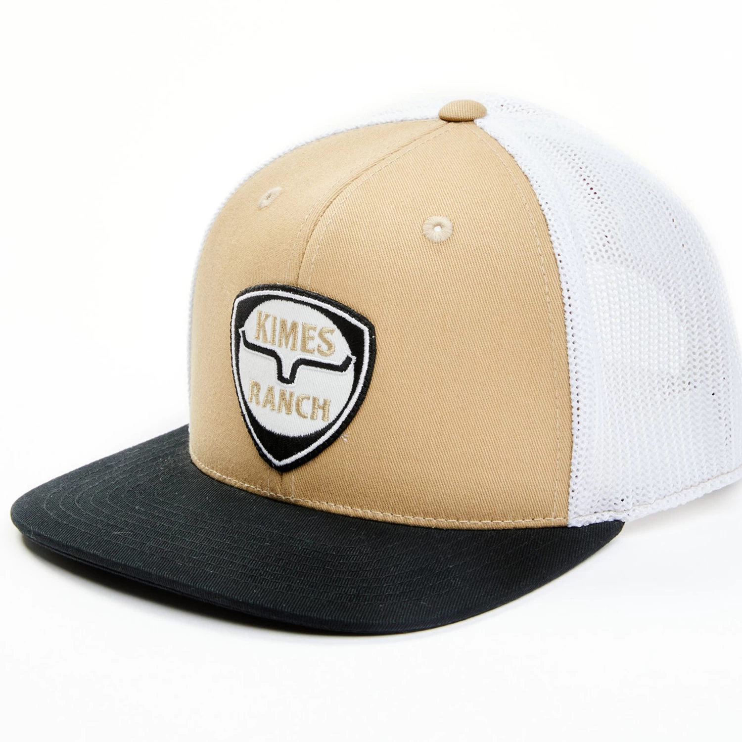 Kimes On Point cap is available in a mid-profile body with a flat brim. Adjustable backstrap for fit. Solid cotton twill front panels and poly mesh back panels. Kimes Ranch ON POINT patch.
