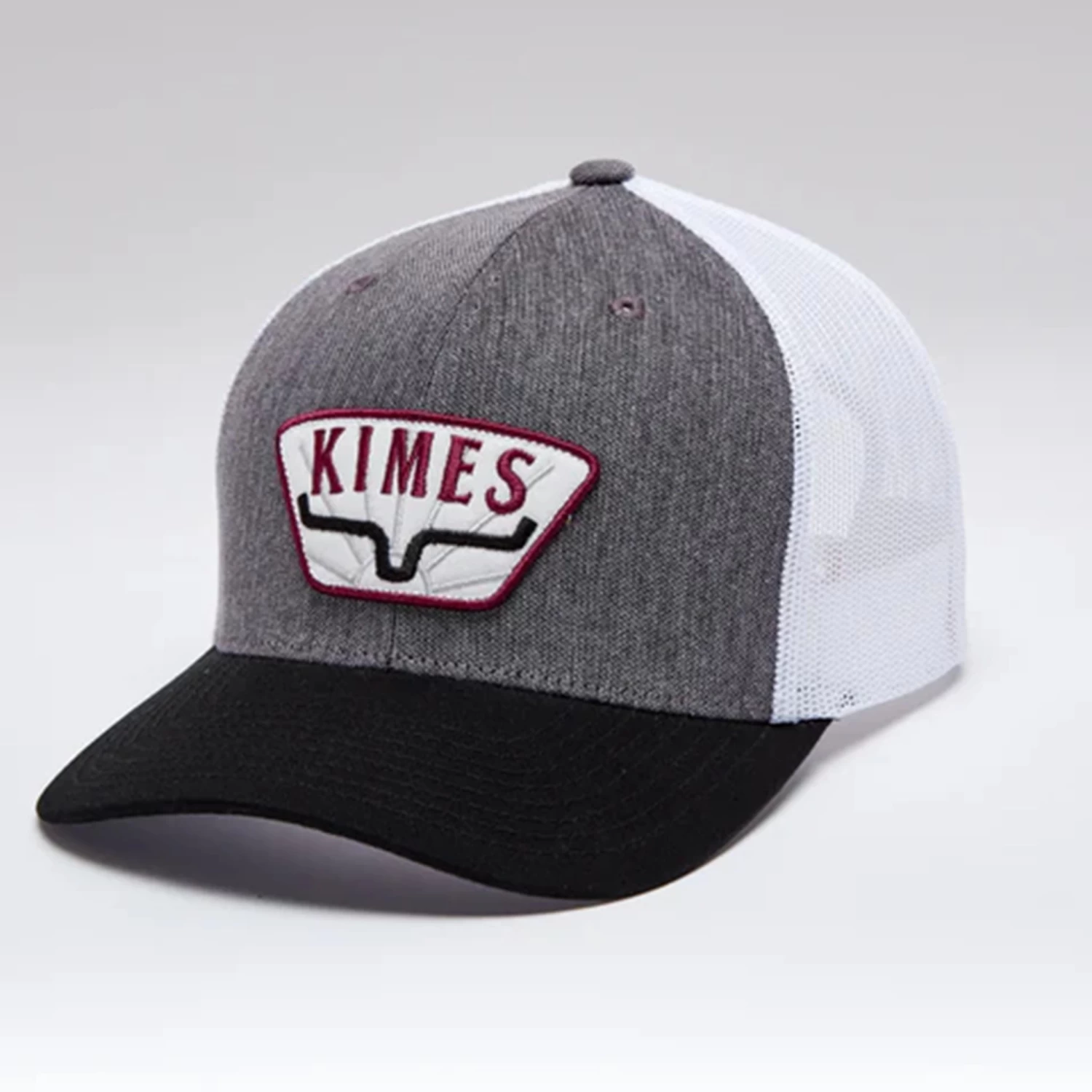 Kimes Ranch offers this mid-profile cap with the two front panels solid fabric and the rest a poly mesh for great ventilation. Adjustable backstrap for fit. Kimes patch front and center.