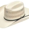 This is a classic Cody Johnson natural straw hat. An all around layered vent lines the center of the crown. The hat highlights his own CJ iconic profile, featuring a brick crown and generous upturned brim.