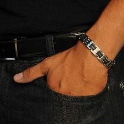Black rubber and stainless steel make for a trendy men’s bracelet! A 1200 gauss samarium cobalt magnet is embedded in each large link. Sabona chooses Samarium Cobalt magnets for long term durability and rust resistant qualities.