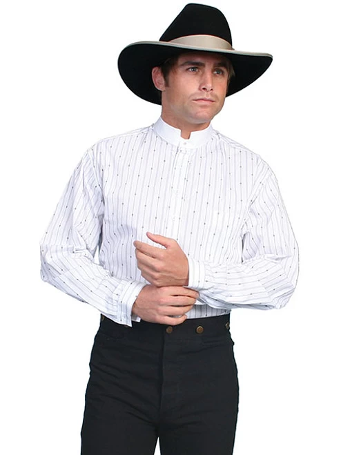 Scully Men’s Range Wear Apparel – Tombstone Collar Shirt – White / Black