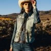 High neck blouse. This high neck denim style is perfect for those hot summer days. It features a button front on the upper part of the blouse, a stand up collar and a ruffled hem.