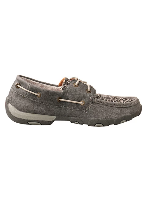 Twisted X Women’s Casuals – Boat Driving Mocs – Grey / Tooled