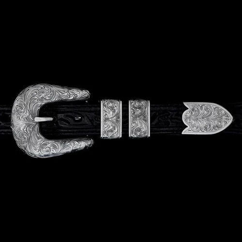 The Ranch Hand 1″ is a great buckle set for someone looking for a fully, hand engraved solid sterling buckle set without any figures or accents. Notice that the shape of the buckle is slightly more flared on the legs giving it an even more western feel.