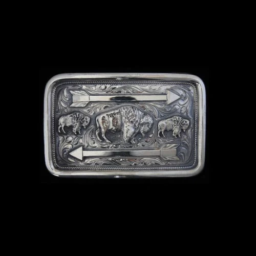 Wear the West. Hand engraved interior with smooth sterling edging. Buffalo figures and arrows embellish a beautiful Western heritage piece.